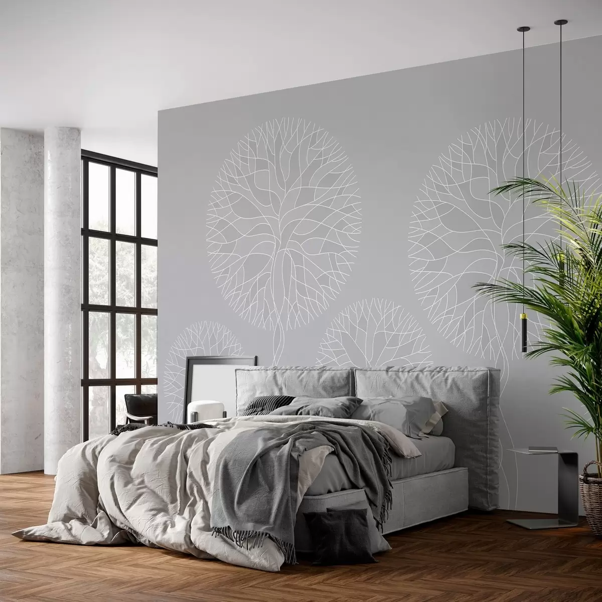 Papier peint Arbres fantaisistes aux couronnes luxuriantes dans des tons gris clair N° w05213v4