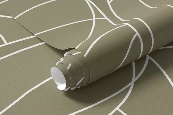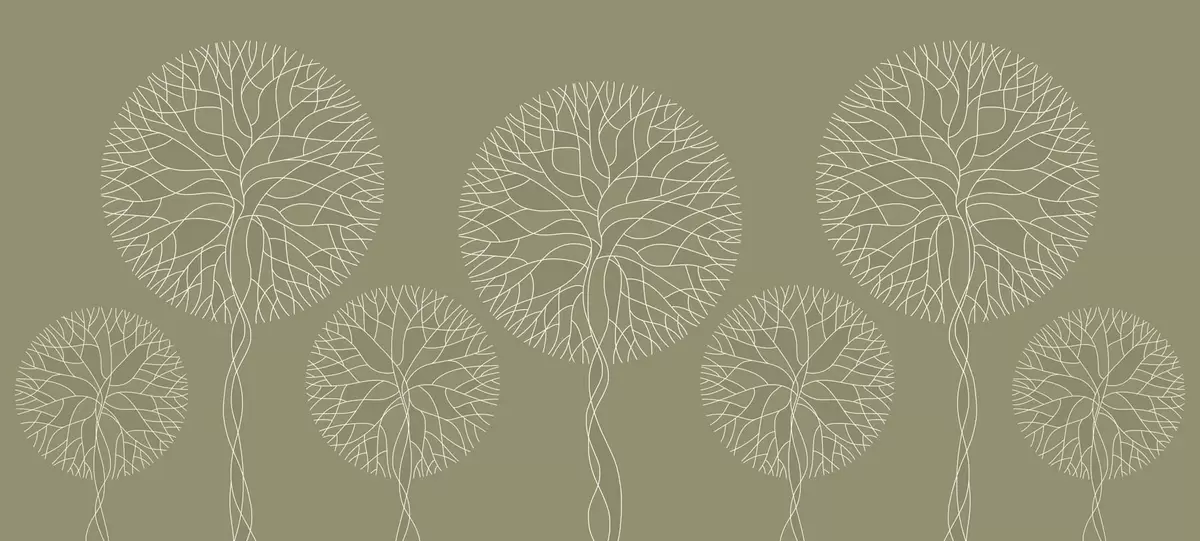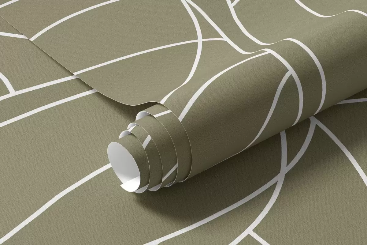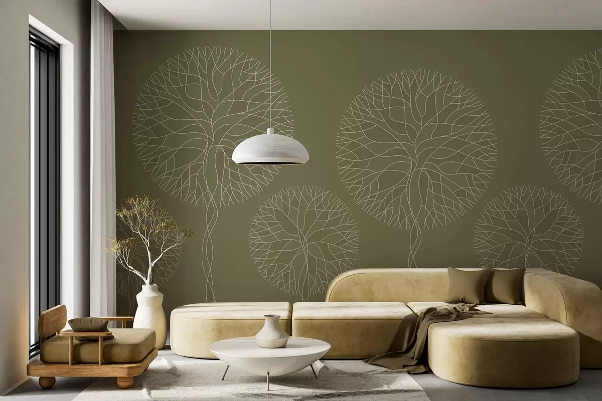Papier peint Arbres fantaisistes linéaires aux couronnes luxuriantes dans des tons kaki N° w05213v7