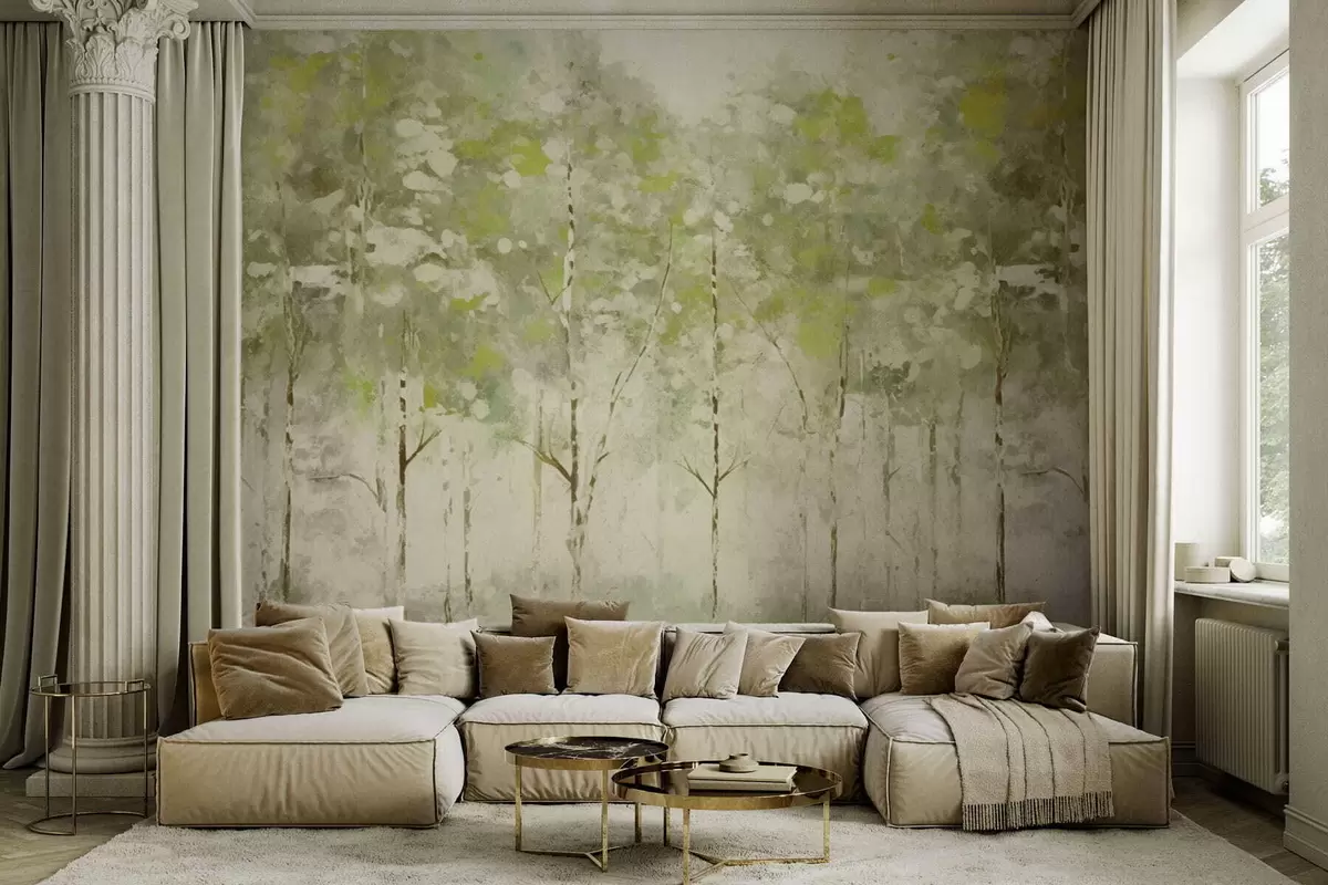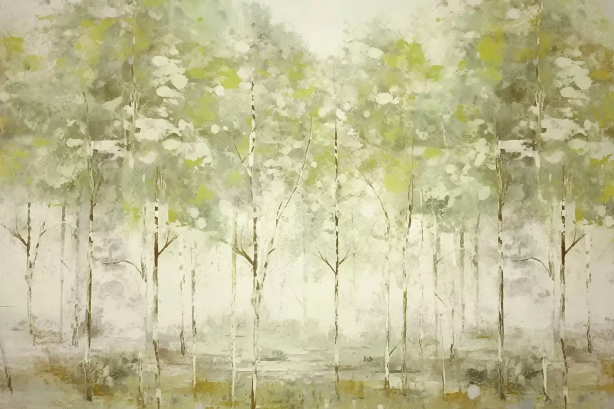 Papier peint Forêt stylisée avec des arbres élancés dans des tons verts N° w05221v1
