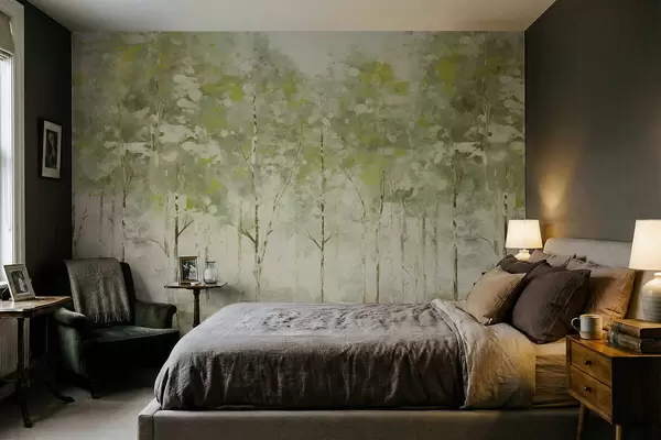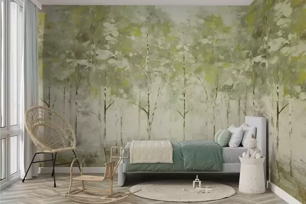 Papier peint Forêt stylisée avec des arbres élancés dans des tons verts N° w05221v1