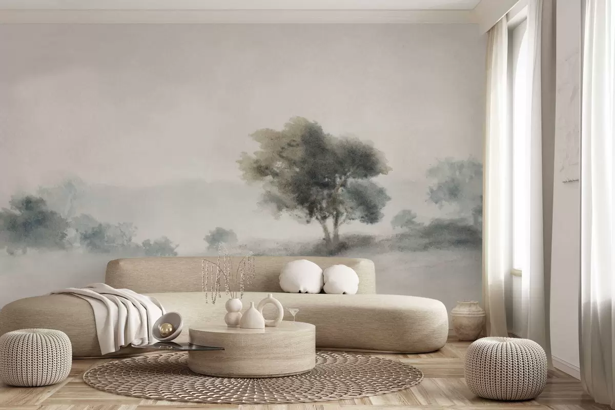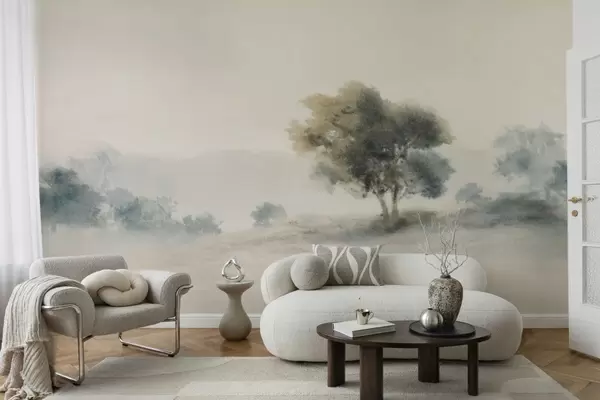 Papier peint Paysage calme avec un arbre et des formes douces et floues N° w05223v1