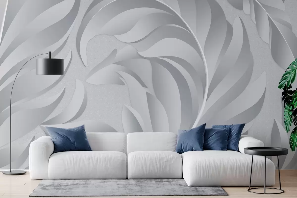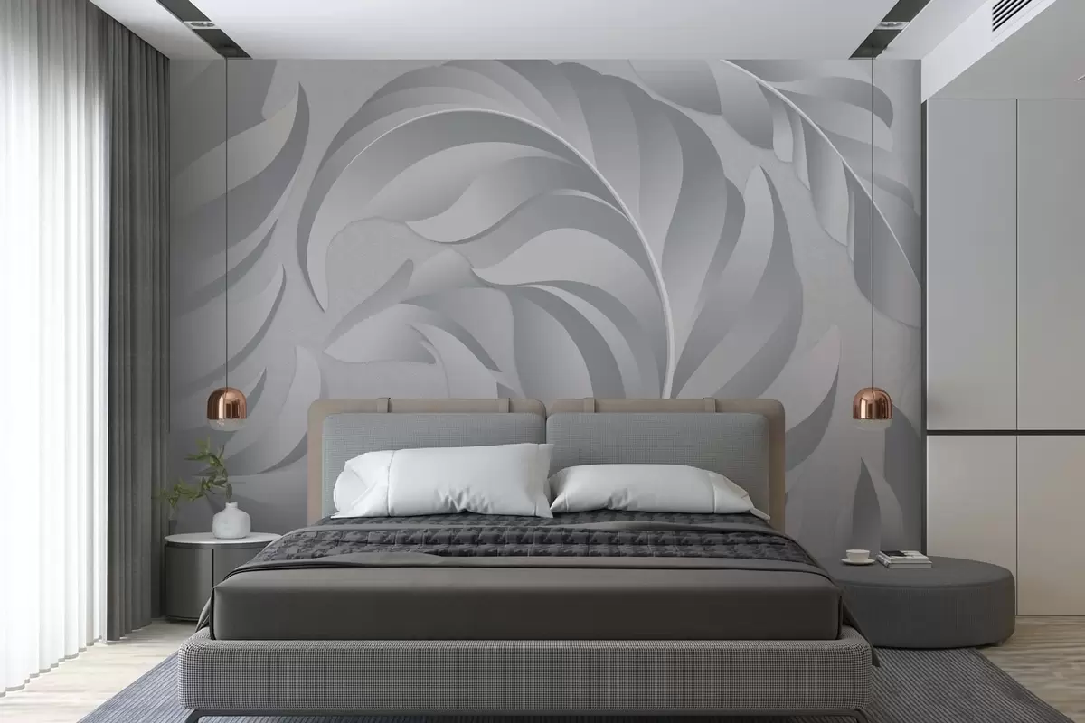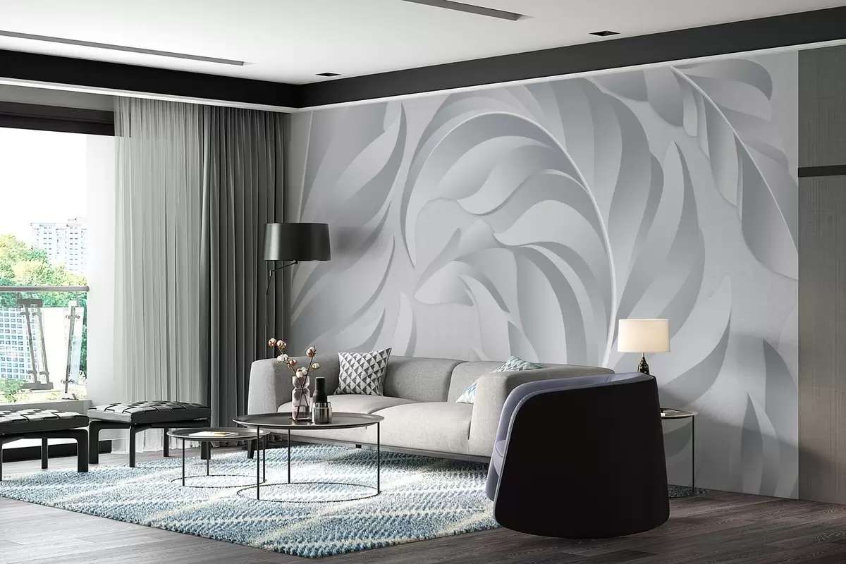 Papier peint grandes plumes texturées dans des tons de gris N° w05231v3