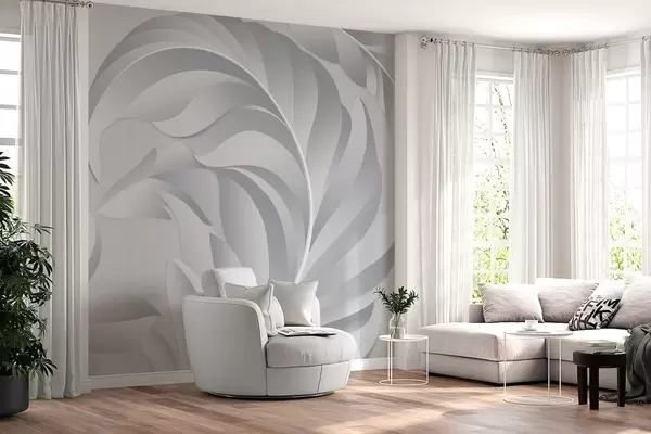Papier peint grandes plumes texturées dans des tons de gris N° w05231v3