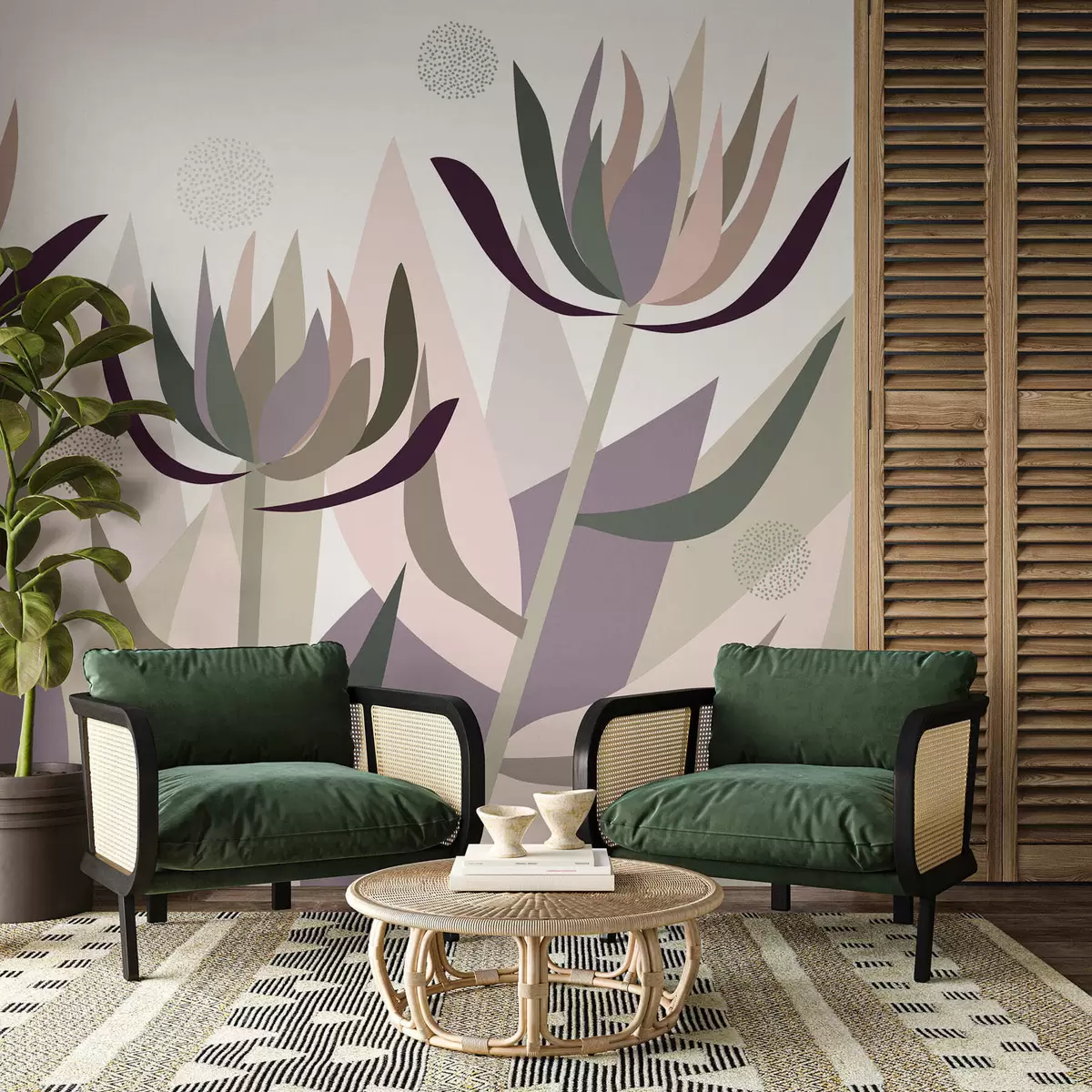Papier peint des fleurs de protéa stylisées dans un style primitif N° w05236