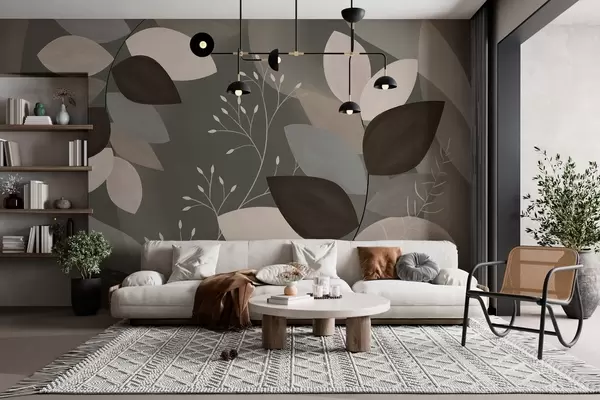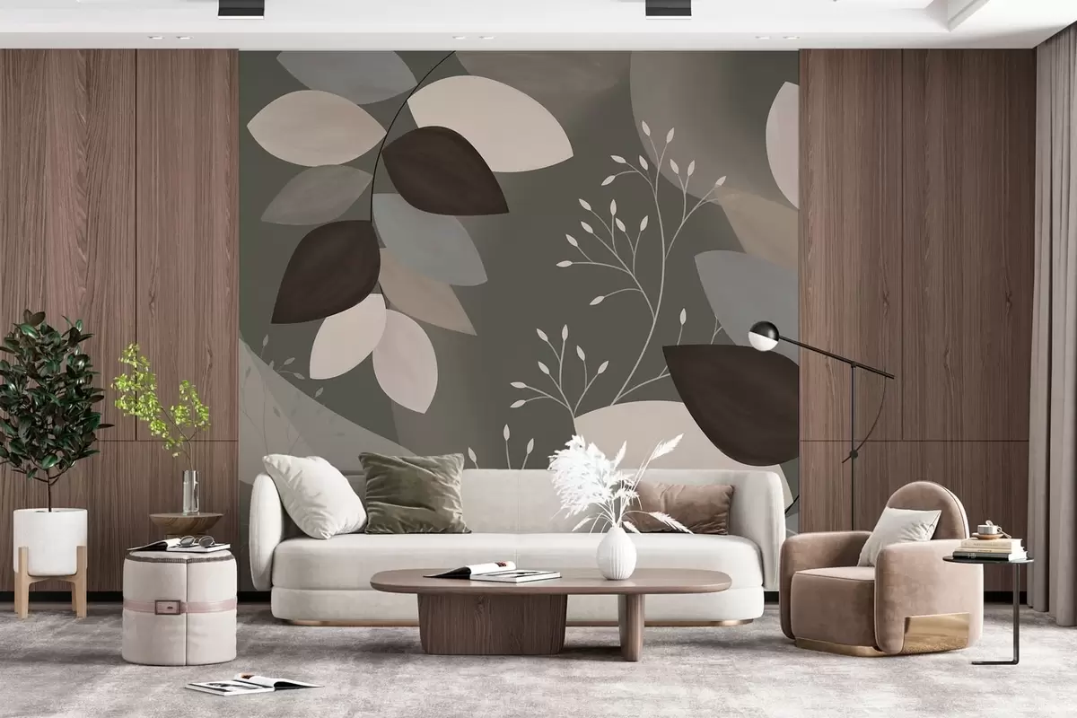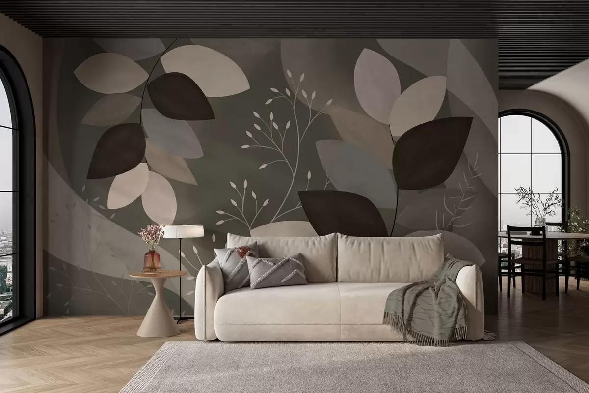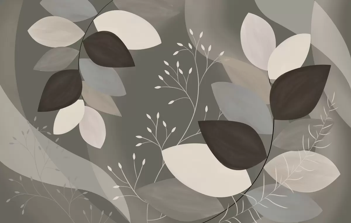 Papier peint feuilles et herbes aux teintes sombres N° w05237v1