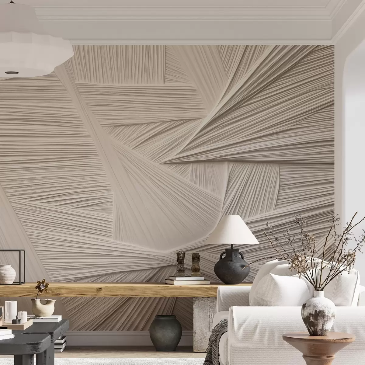 Le papier peint est divisé en bandes pratiques d'une largeur maximale de 50 cm