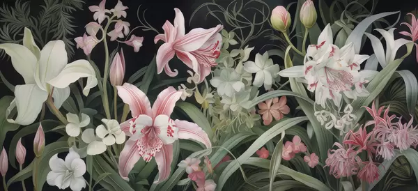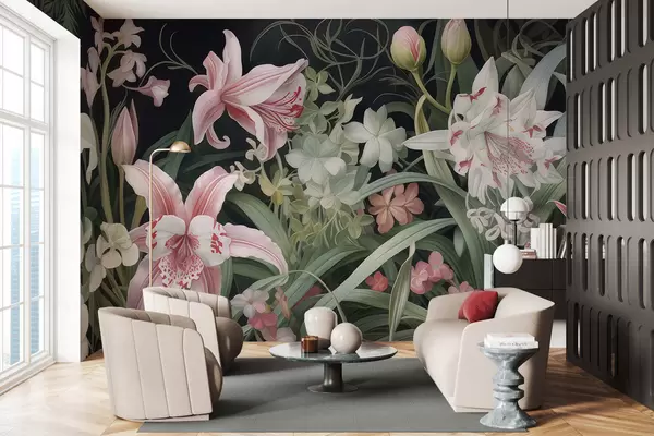 Papier peint De magnifiques fleurs sur fond sombre N° w05278