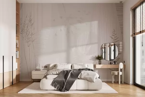 Papier peint Composition minimaliste avec des herbes et des formes N° w05318