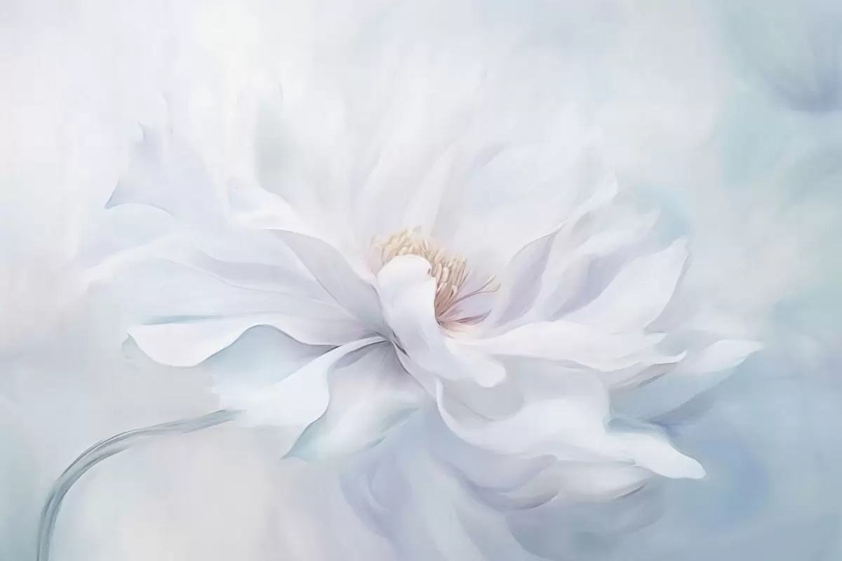 Papier peint Fleur blanche délicate aux pétales fluides sur fond bleu N° w05354