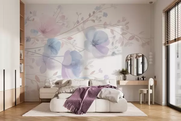 Papier peint de délicates fleurs sauvages sur fond blanc N° w05388