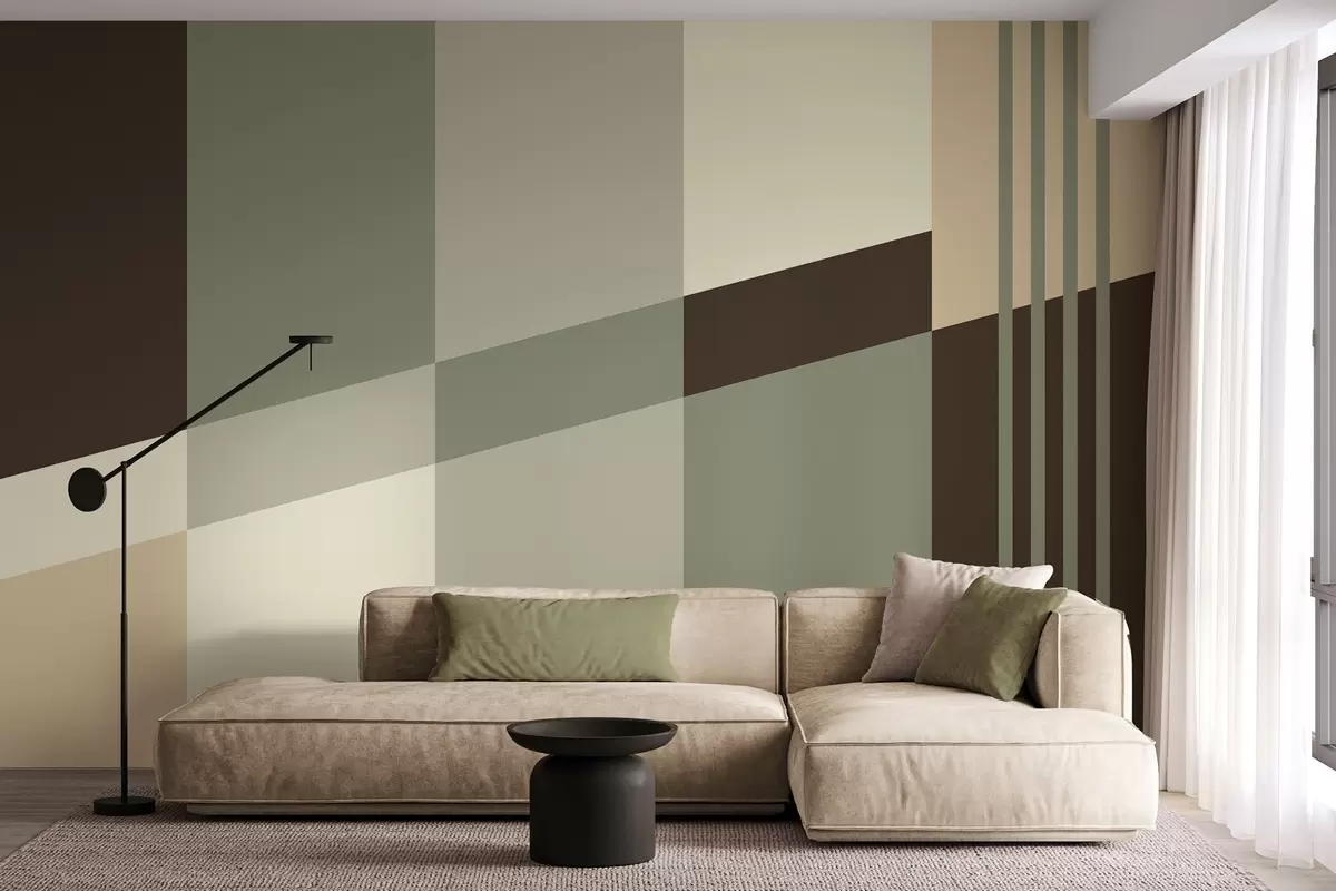Papier peint Des motifs géométriques discrets dans des tons olive, beige et marron N° w05390