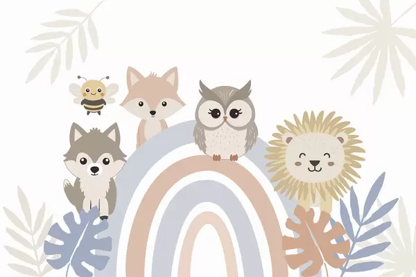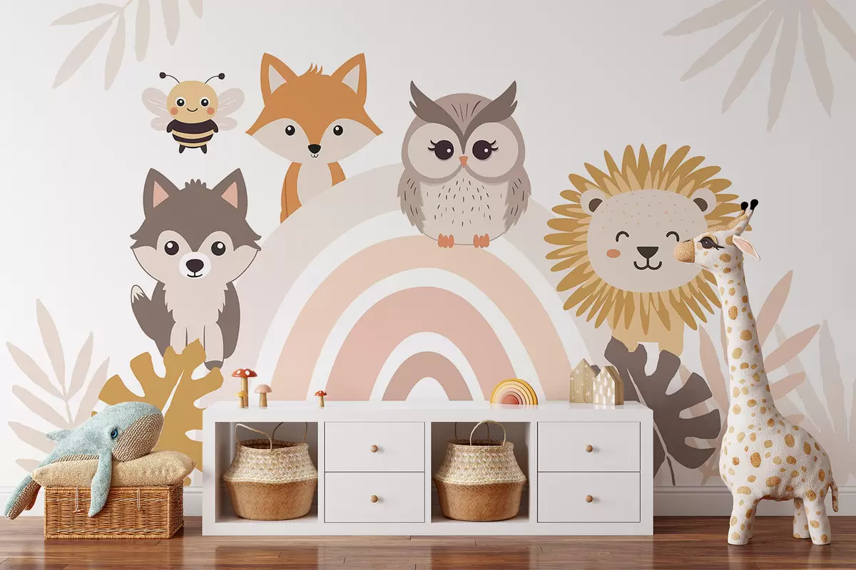 Papier peint De mignons animaux près de l'arc-en-ciel N° w05399
