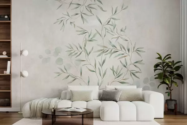 Papier peint Motif botanique délicat composé de fines branches sur un fond clair N° w05424