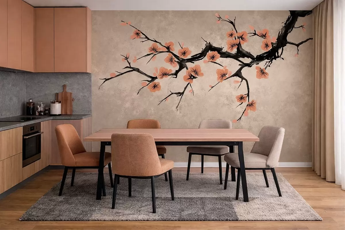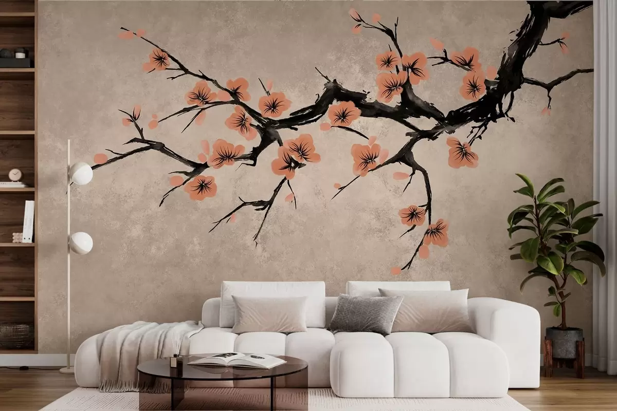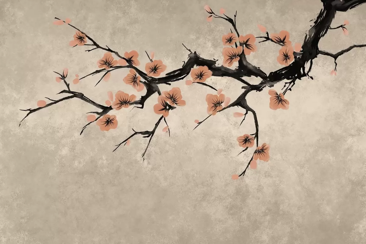 Papier peint Branche fleurie de fleurs de pêcher sur fond texturé N° w05425v3