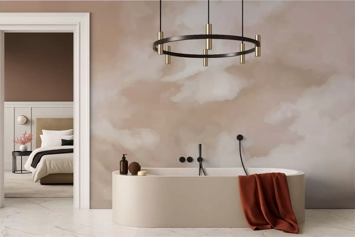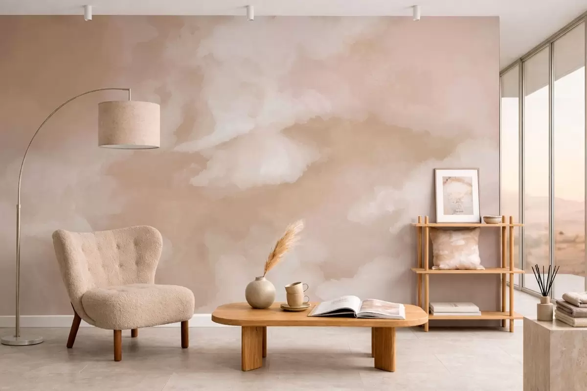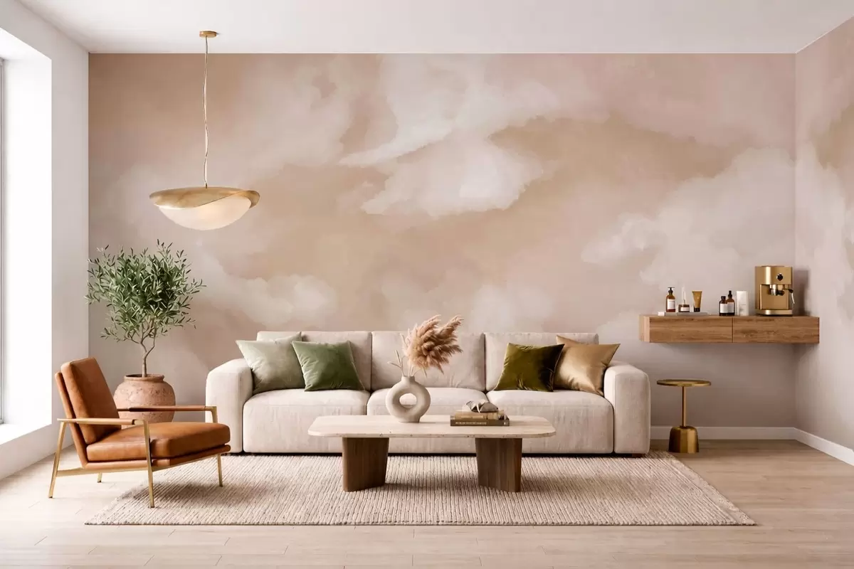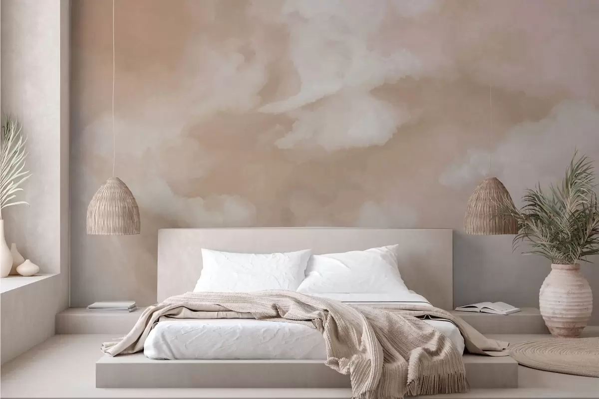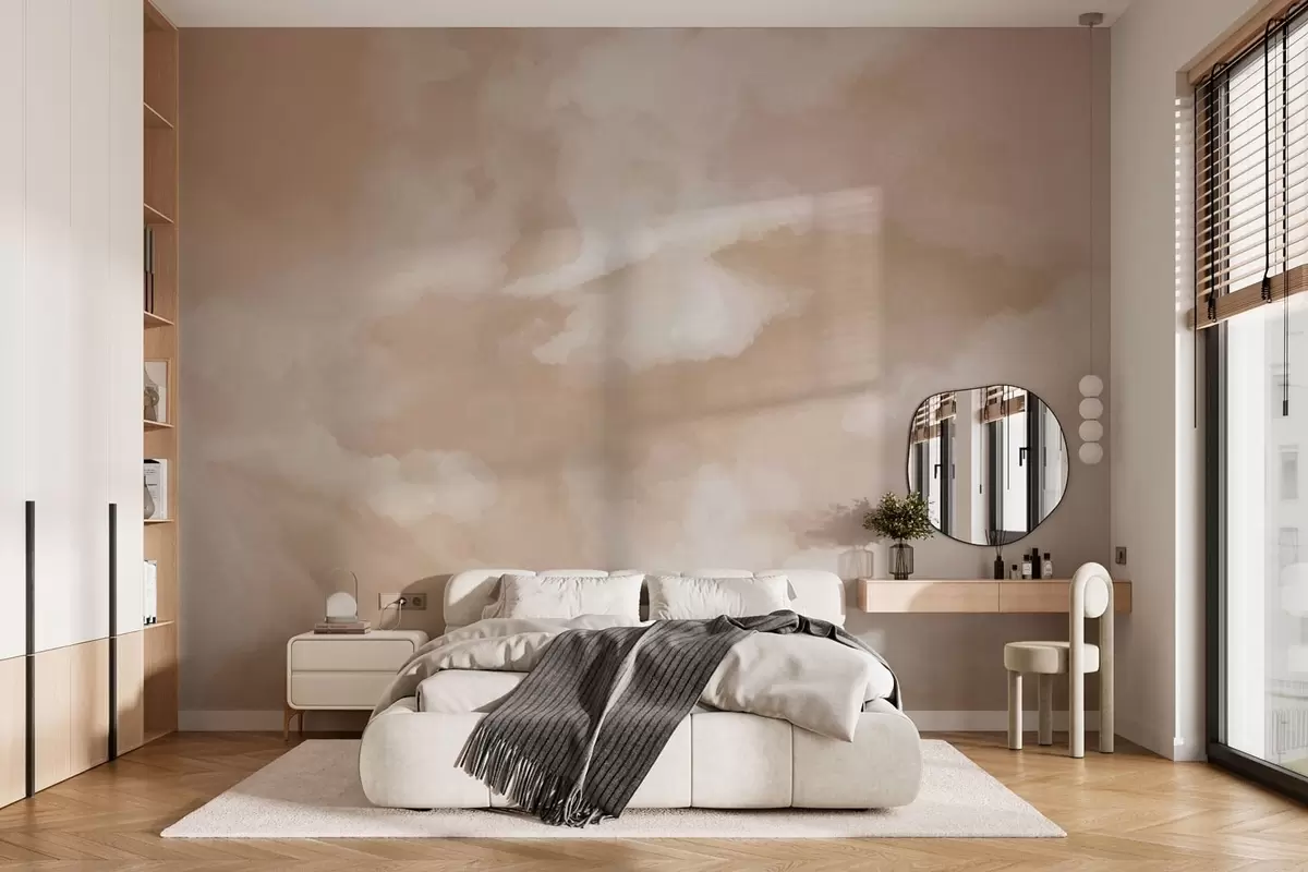 Papier peint Fond nuageux et doux dans des tons beiges chauds N° w05426