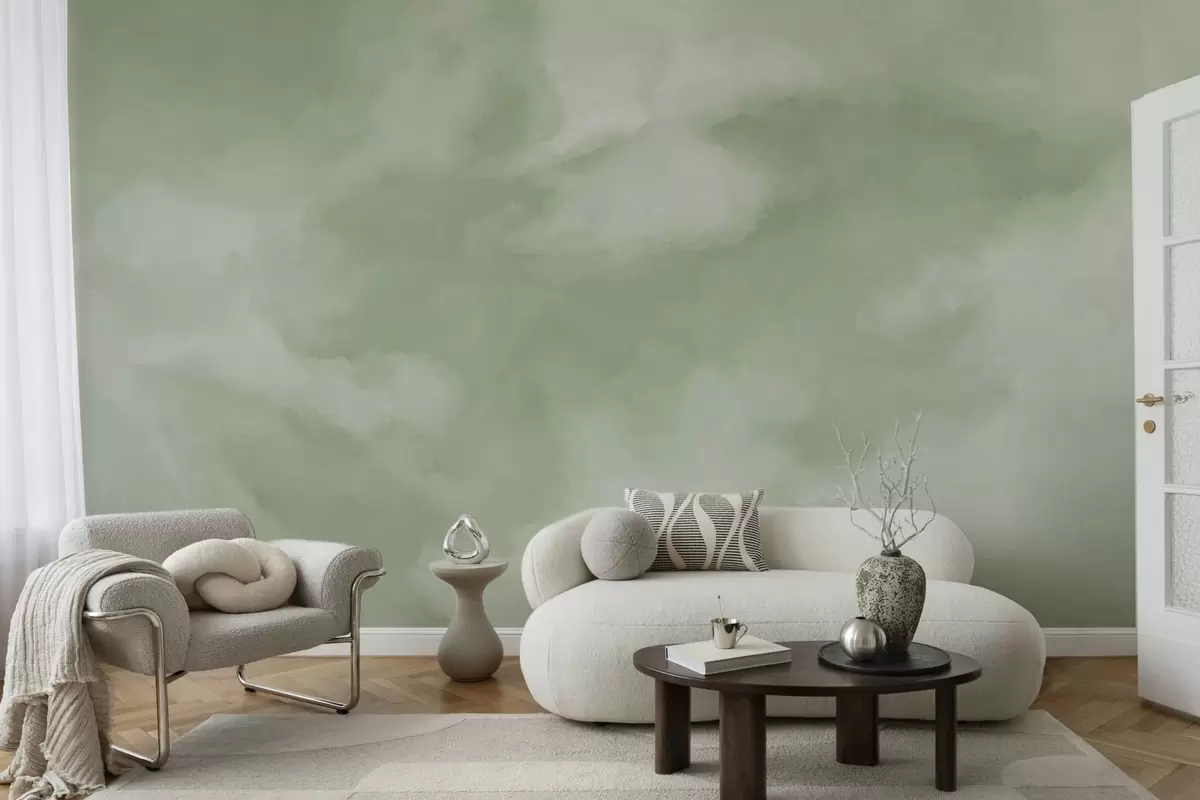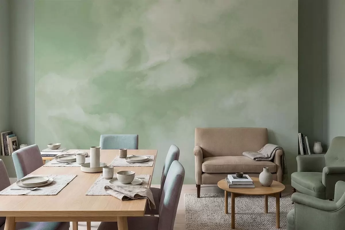 Papier peint Fond nuageux aux teintes vertes douces N° w05426v2