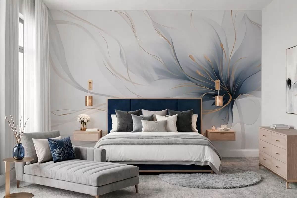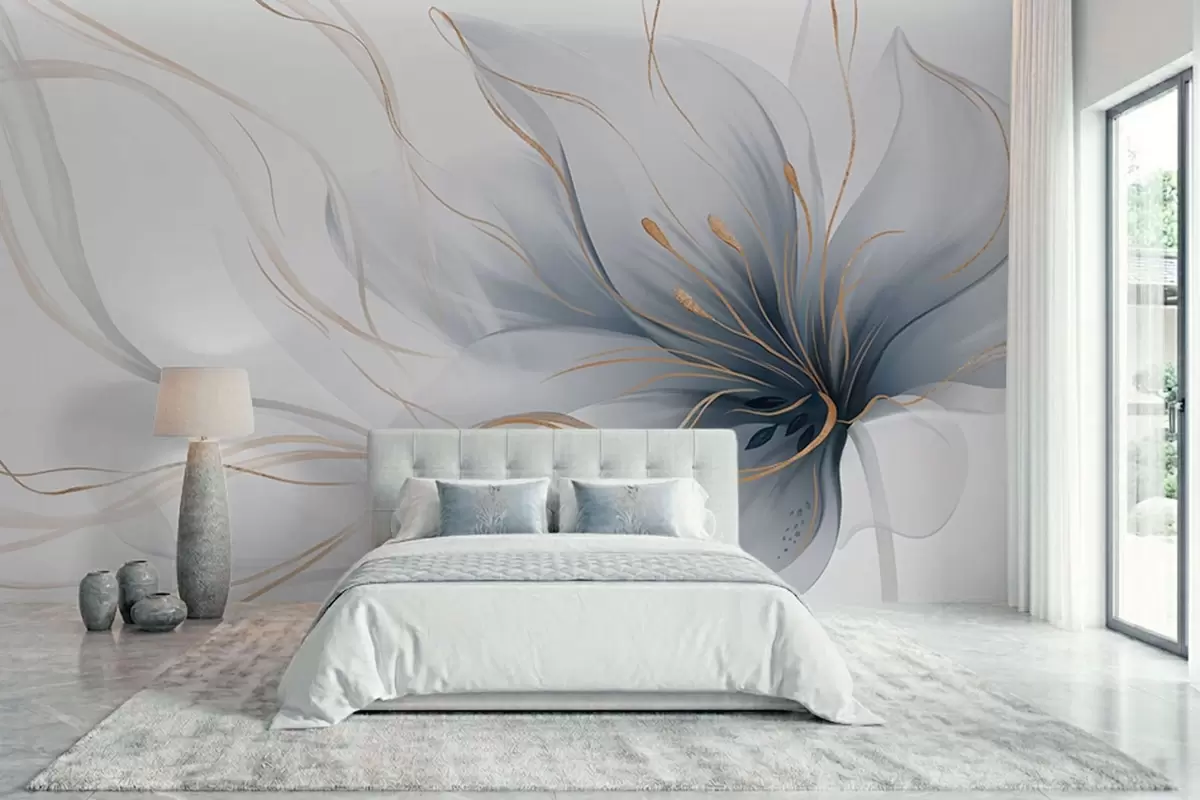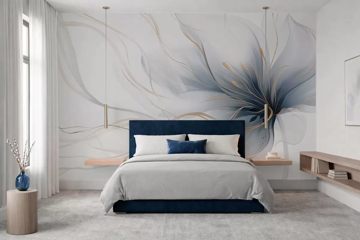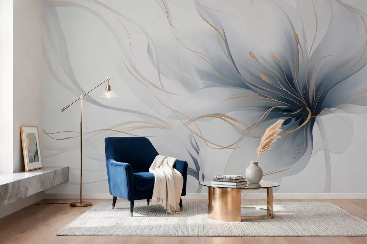 Papier peint Une fleur bleue abstraite aux lignes fluides, dans le style Fluid Art N° w05428