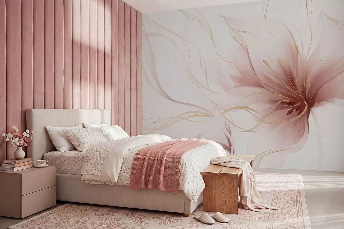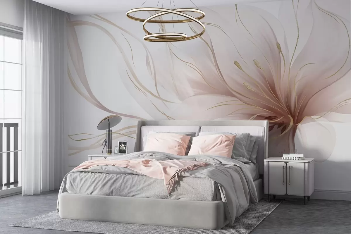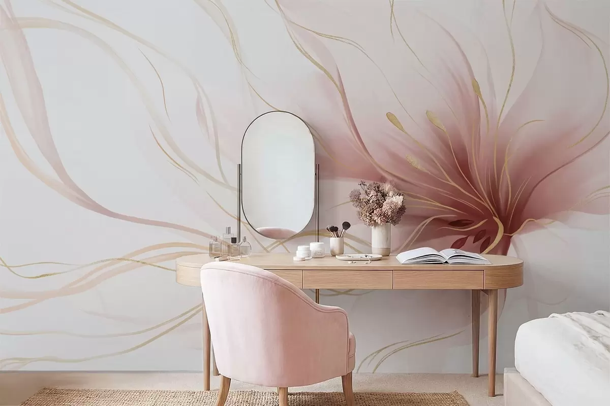 Papier peint Une fleur rose abstraite aux lignes fluides, dans le style Fluid Art N° w05428v1