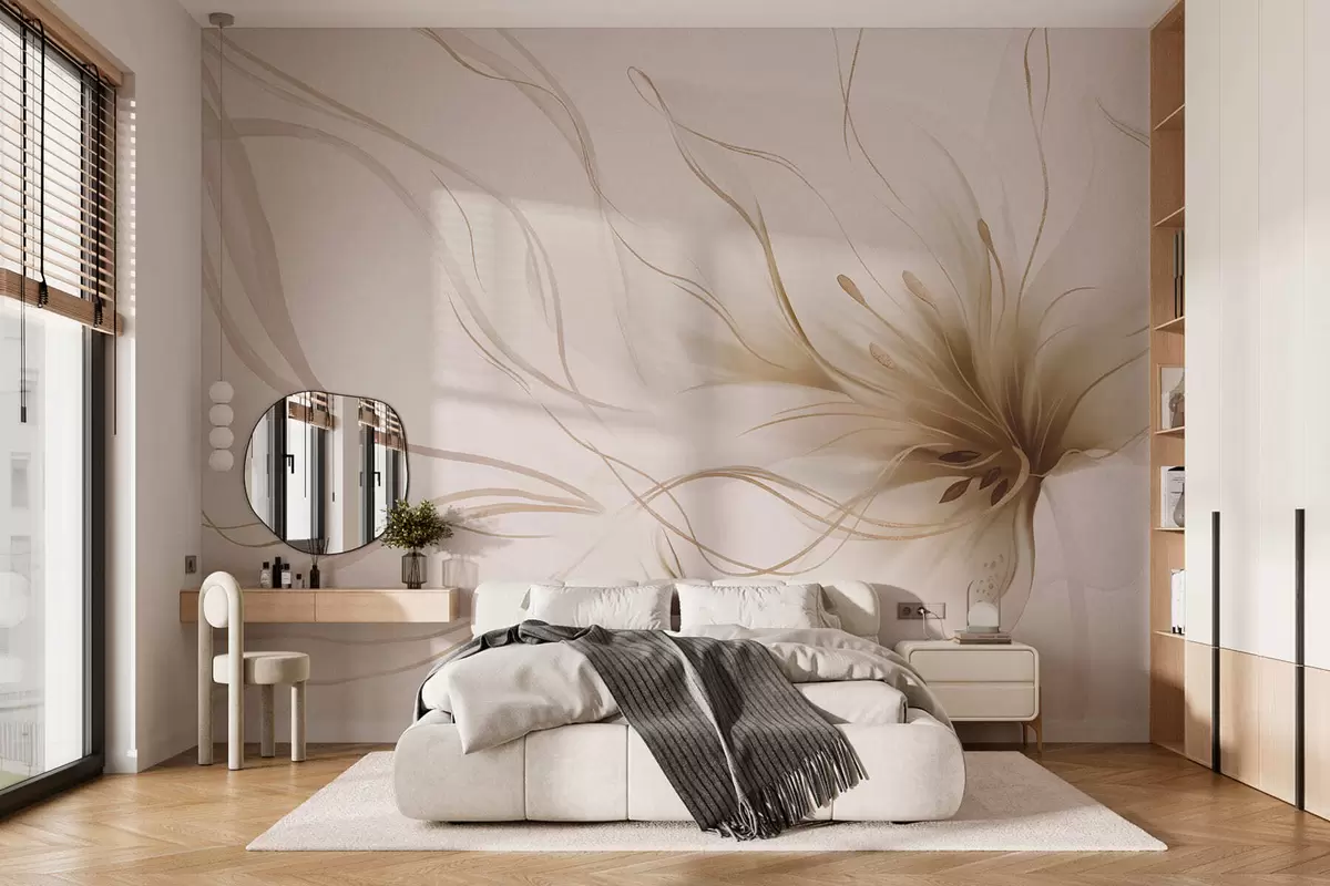Papier peint Une fleur abstraite de couleur beige aux lignes fluides, dans le style Fluid Art N° w05428v2