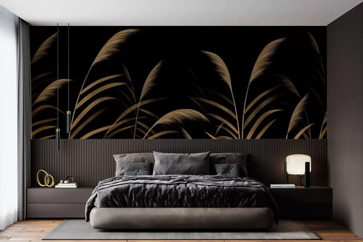 Papier peint Herbes minimalistes sur fond sombre, fort contraste N° w05432v3