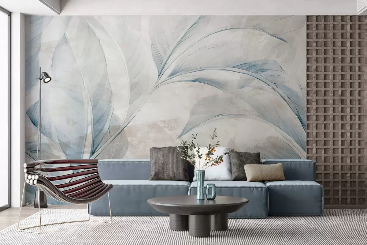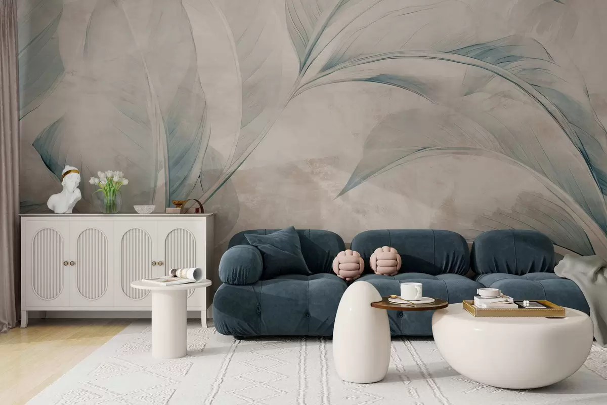 Papier peint Des feuilles sur un mur en béton N° w05440