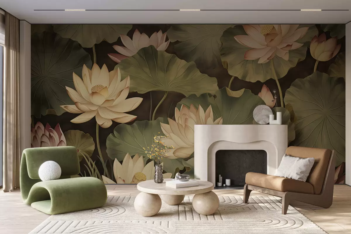 Papier peint Fleurs de lotus vintage N° w05445