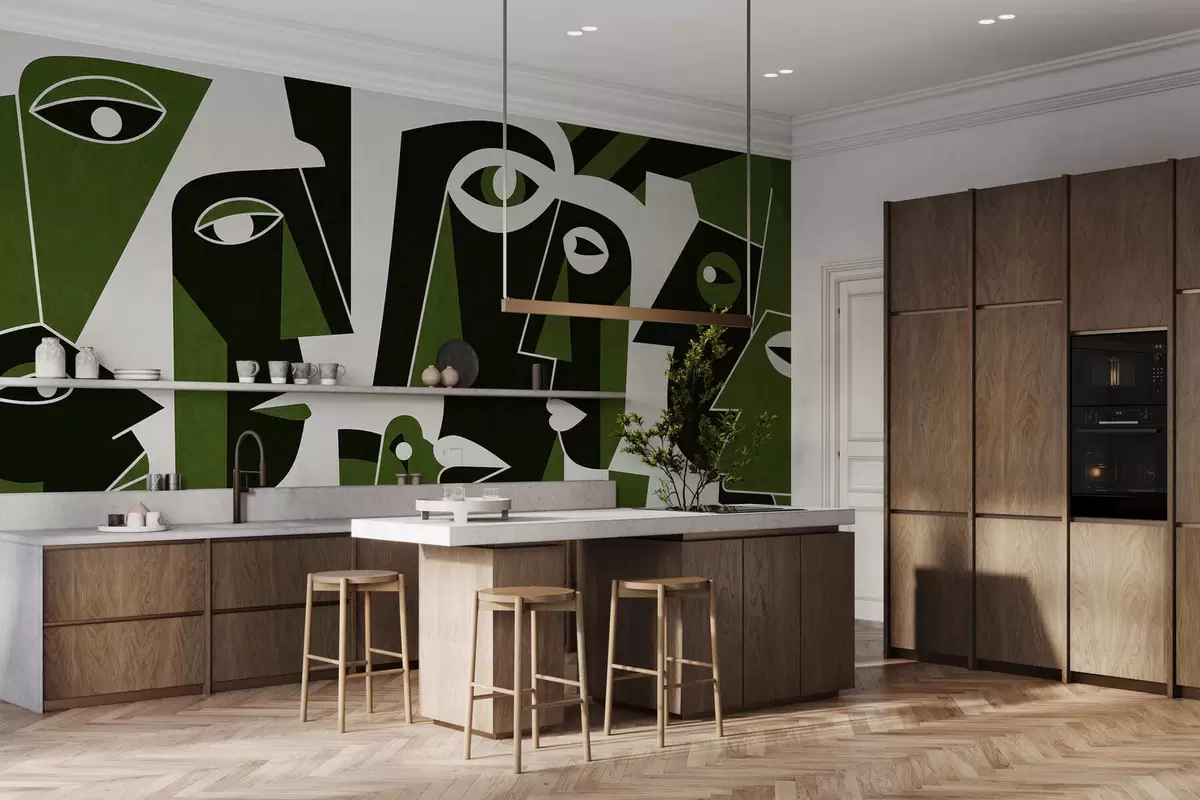 Le papier peint est divisé en bandes pratiques d'une largeur maximale de 50 cm