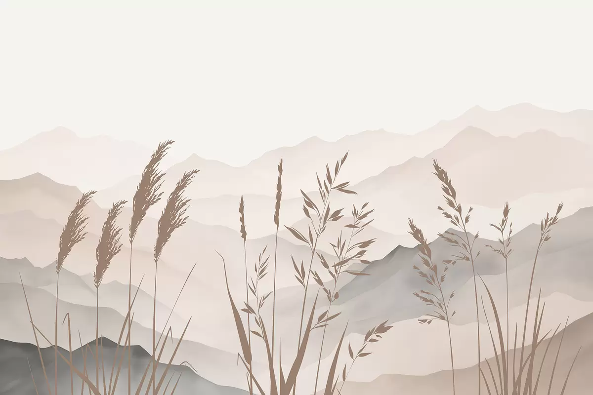 Papier peint Les silhouettes de l'herbe sur fond de montagnes N° w05501v1