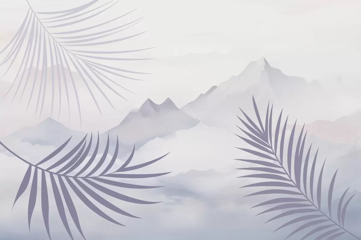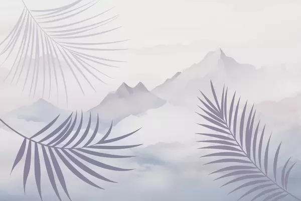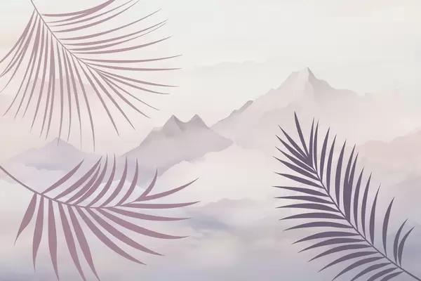 Papier peint Des feuilles de palmier avec les montagnes en arrière-plan N° w05548