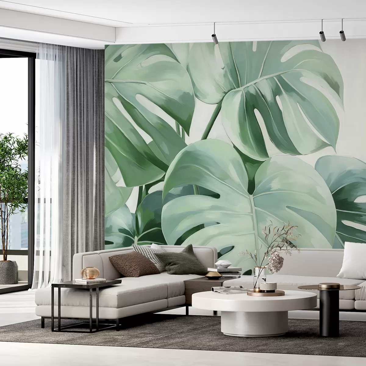 Papier peint Grandes feuilles vertes de monstera tropical N° w08116