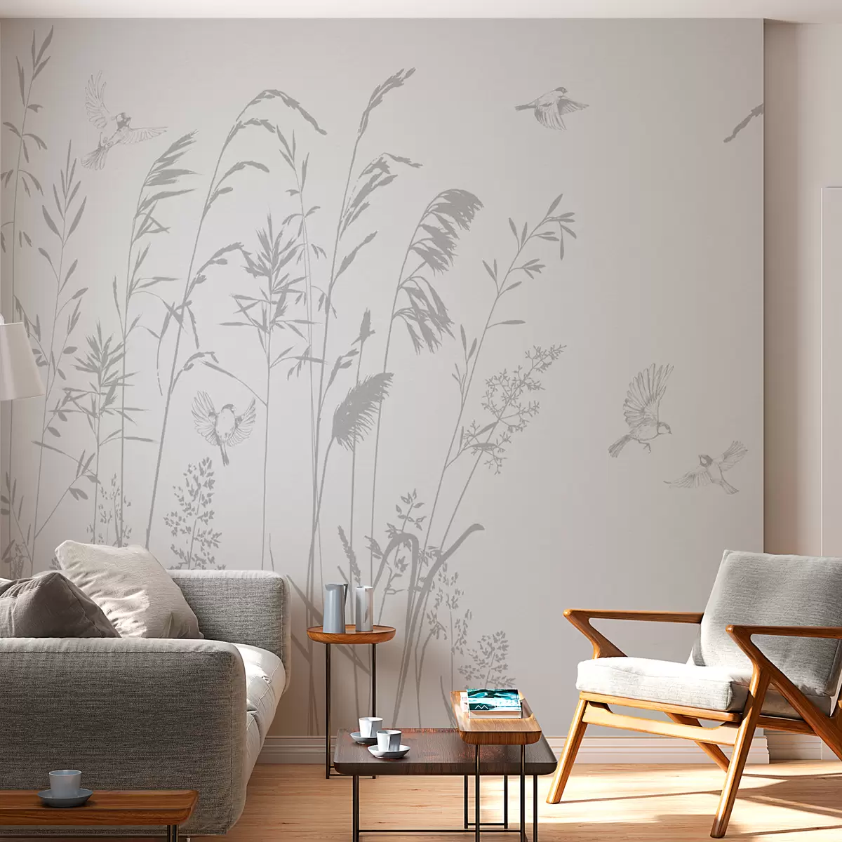 Papier peint Plantes et petits oiseaux nature minimalisme couleur grise N° w08172v1