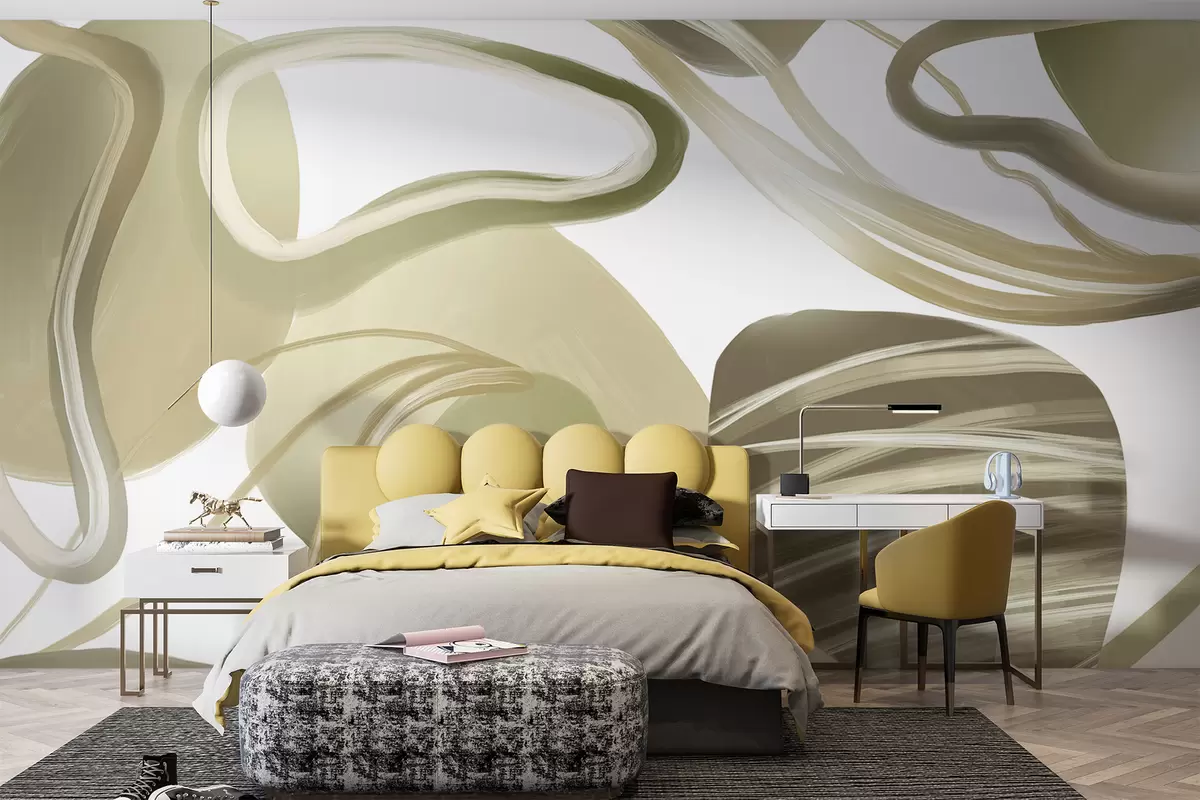 Papier peint Formes abstraites tourbillonnantes et courbes dans des tons de beige créant une composition dynamique et fluide N° w08279