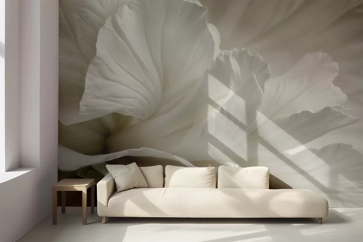 Papier peint Impression abstraite minimaliste d'une délicate fleur blanche aux pétales doux et veloutés N° w08424