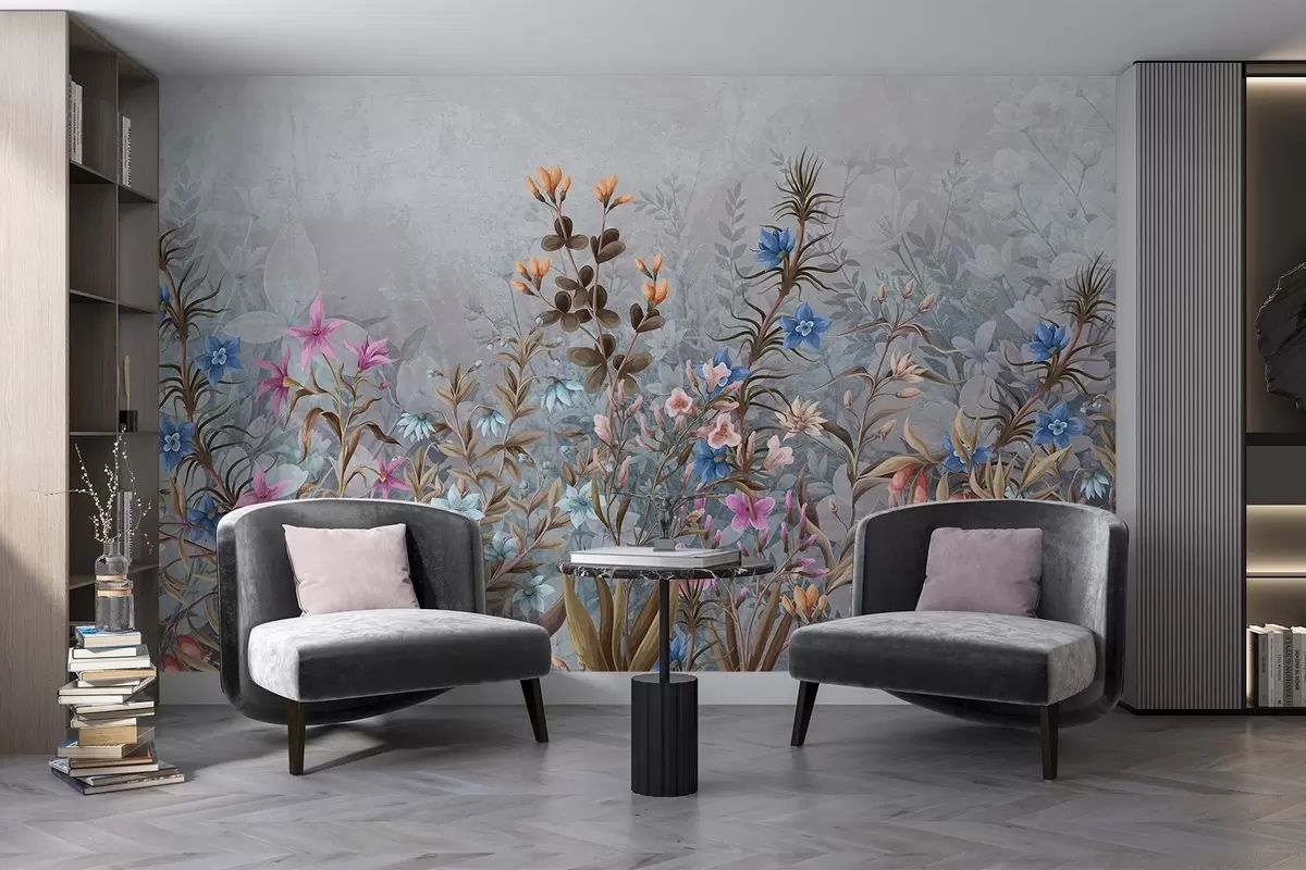Papier peint Un imprimé floral luxuriant et vibrant avec des fleurs et des plantes colorées aux détails et aux textures complexes N° w08428