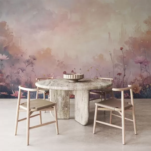 Papier peint Fleurs sauvages sur fond de silhouette de château N° w08478
