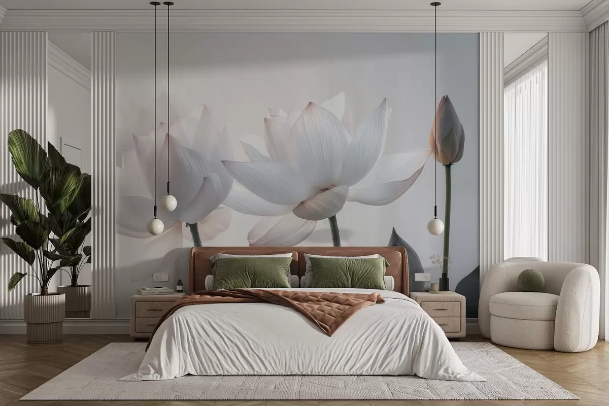 Papier peint Douces fleurs de lotus avec pétales et feuilles N° w08488