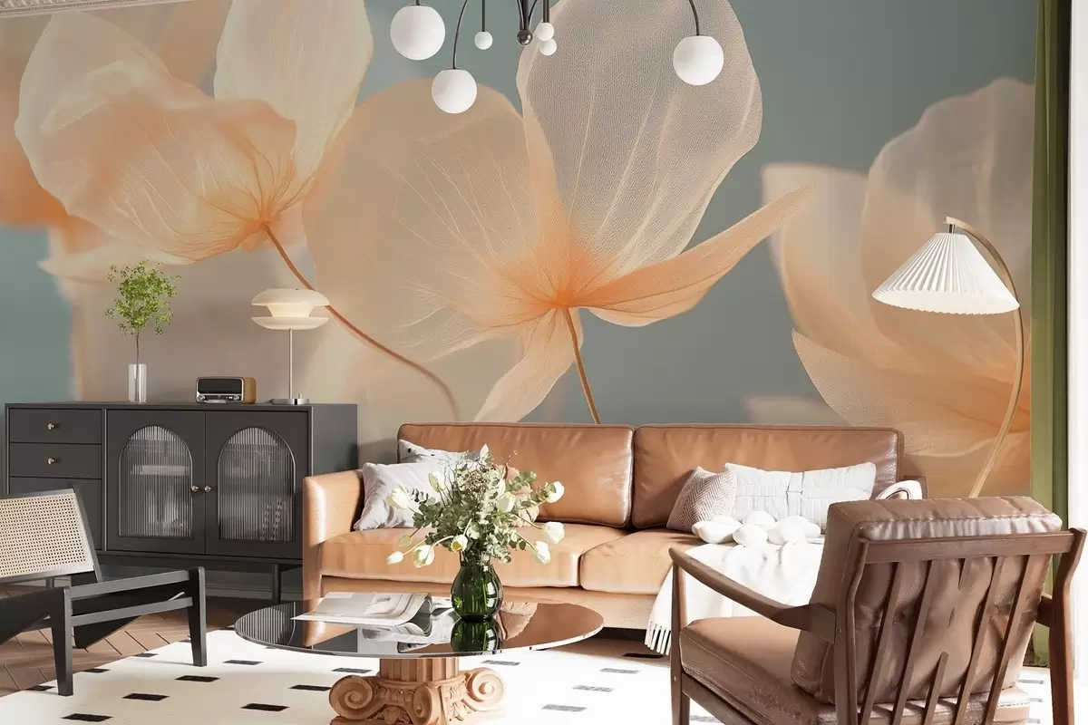 Papier peint Pétales de lotus, une composition délicate sur fond bleu N° w08500
