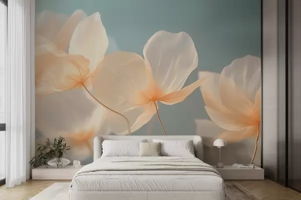 Papier peint Pétales de lotus, une composition délicate sur fond bleu N° w08500