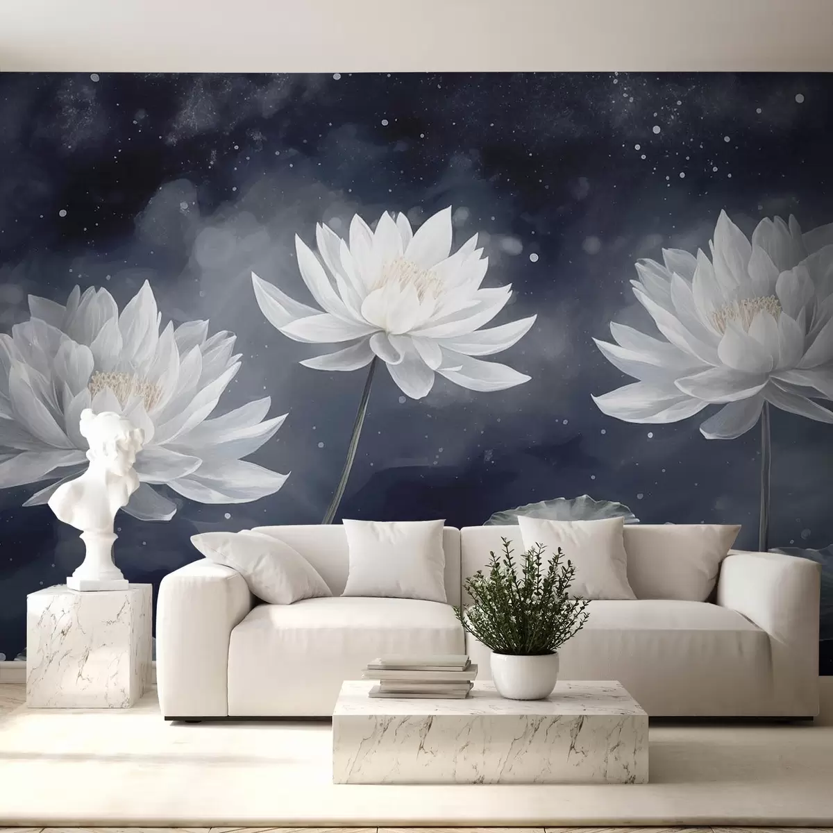 Papier peint Trois fleurs de lotus sur fond sombre N° w08506