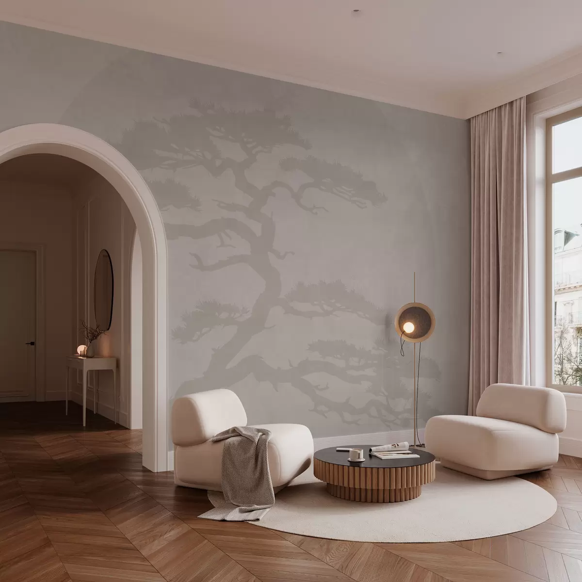 Papier peint Bonsaï japonais et géométrie fond grunge N° w08554v1
