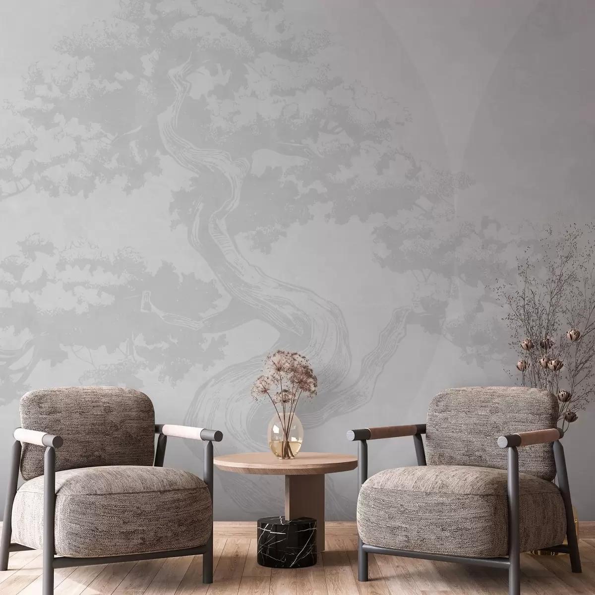Papier peint Arbre bonsaï minimalisme géométrie fond grunge N° w08557v1