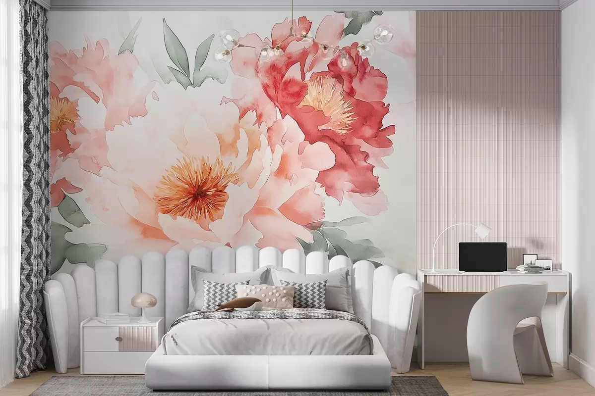 Papier peint Grandes pivoines délicates à l'aquarelle N° w08571