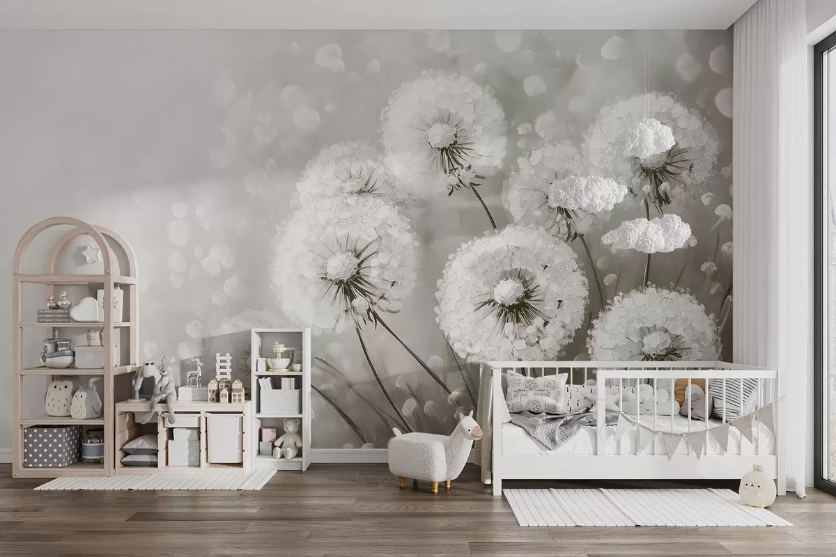 Papier peint Pissenlits aériens sur fond monochrome N° w08594