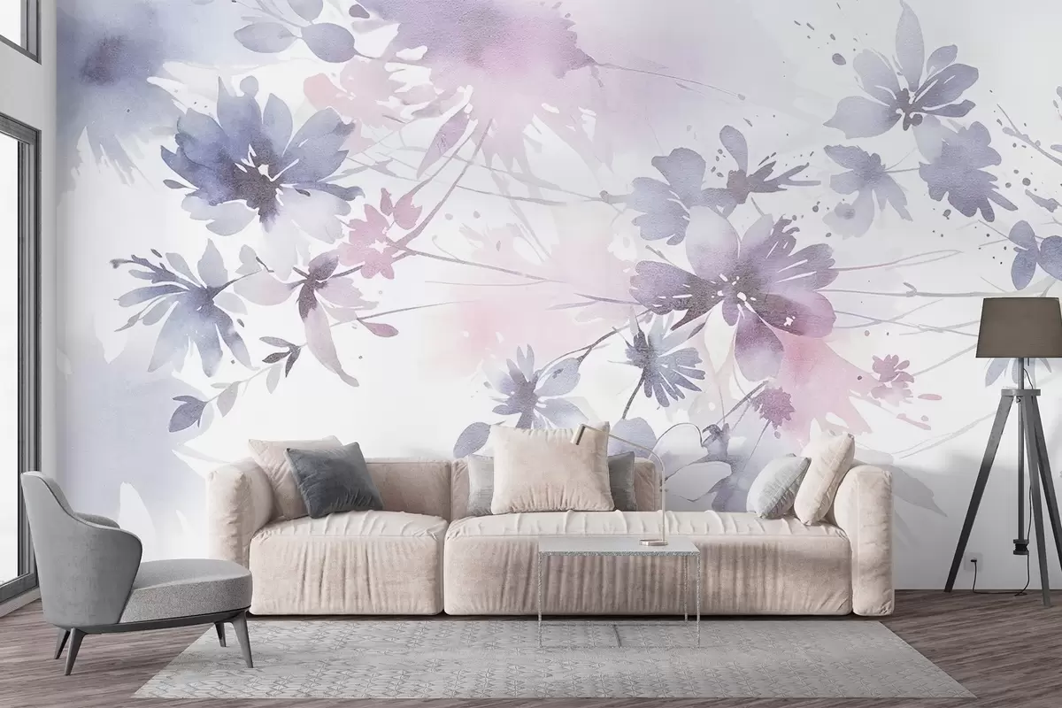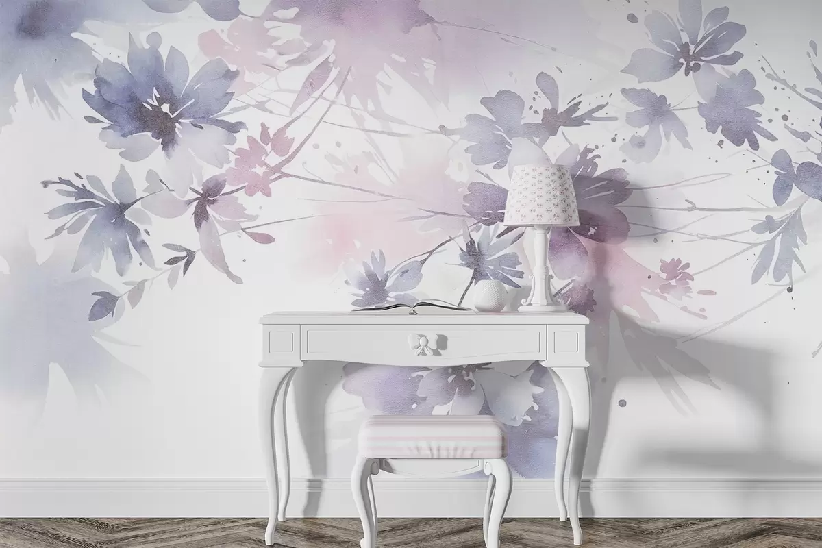 Papier peint Fleurs abstraites texturées aux couleurs douces et pastel sur fond flou, créant une atmosphère éthérée et rêveuse N° w08645