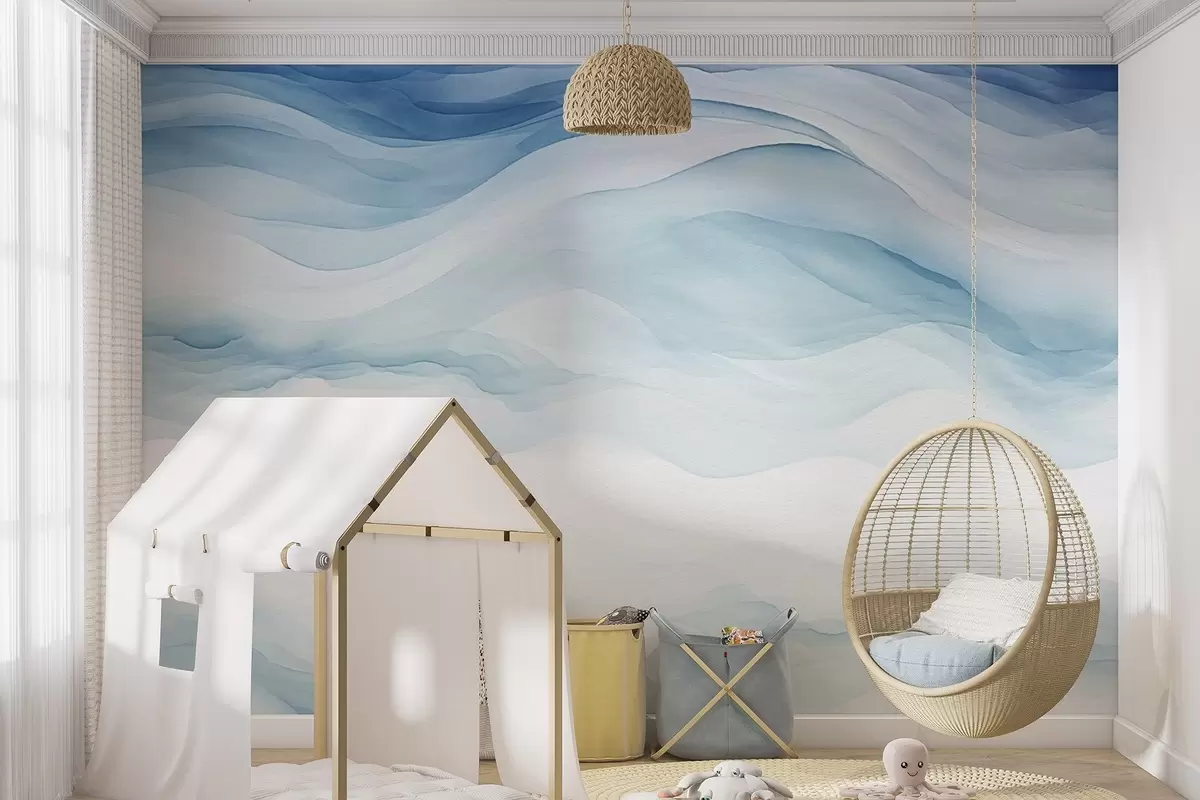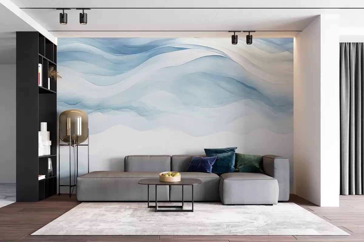 Papier peint Vagues bleues aériennes, abstraction N° w08654