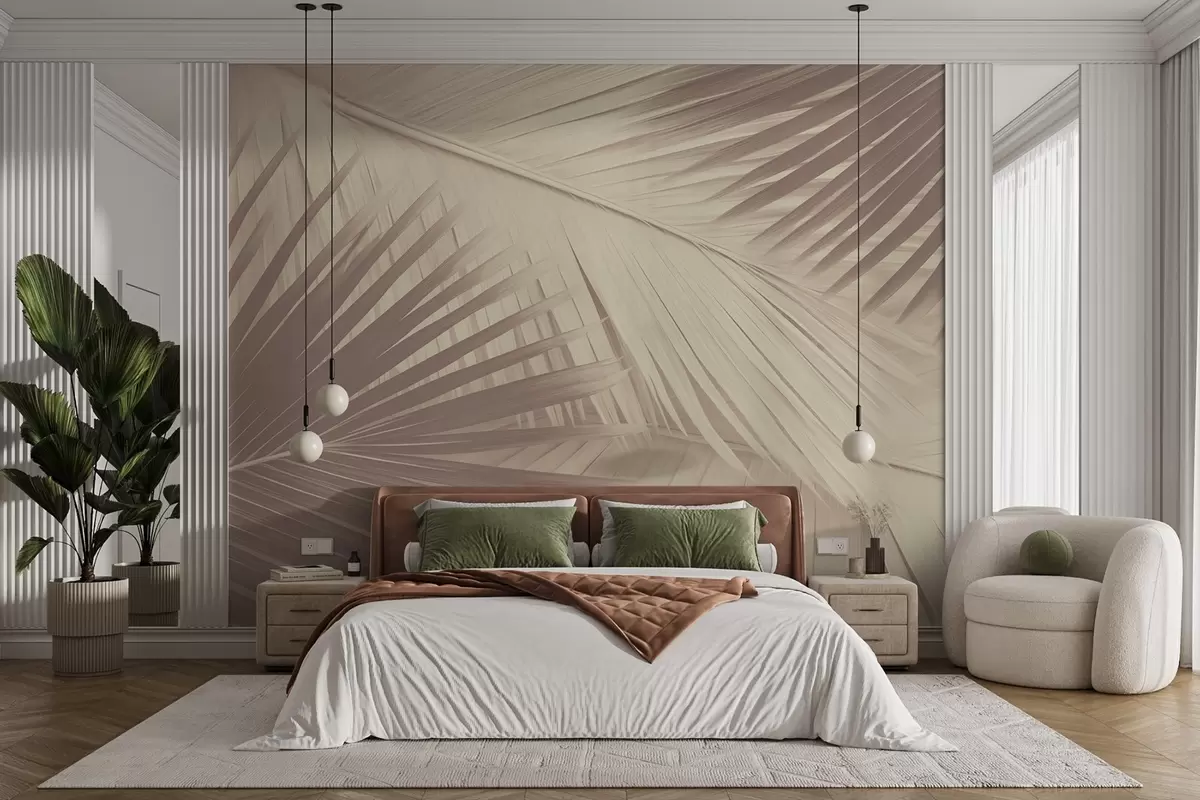 Papier peint Feuilles de palmier abstraites dans des tons doux N° w08677