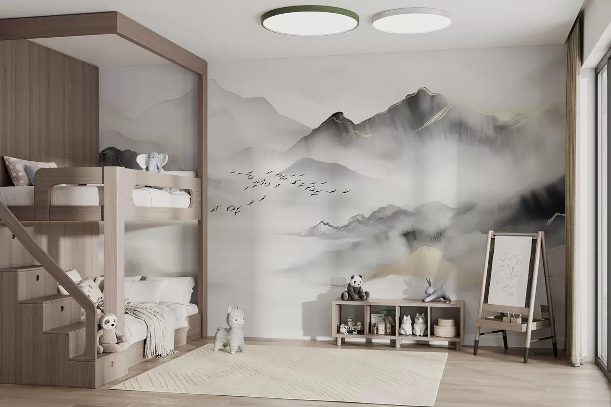Papier peint Montagnes délicates dans le brouillard en style aquarelle N° w08719