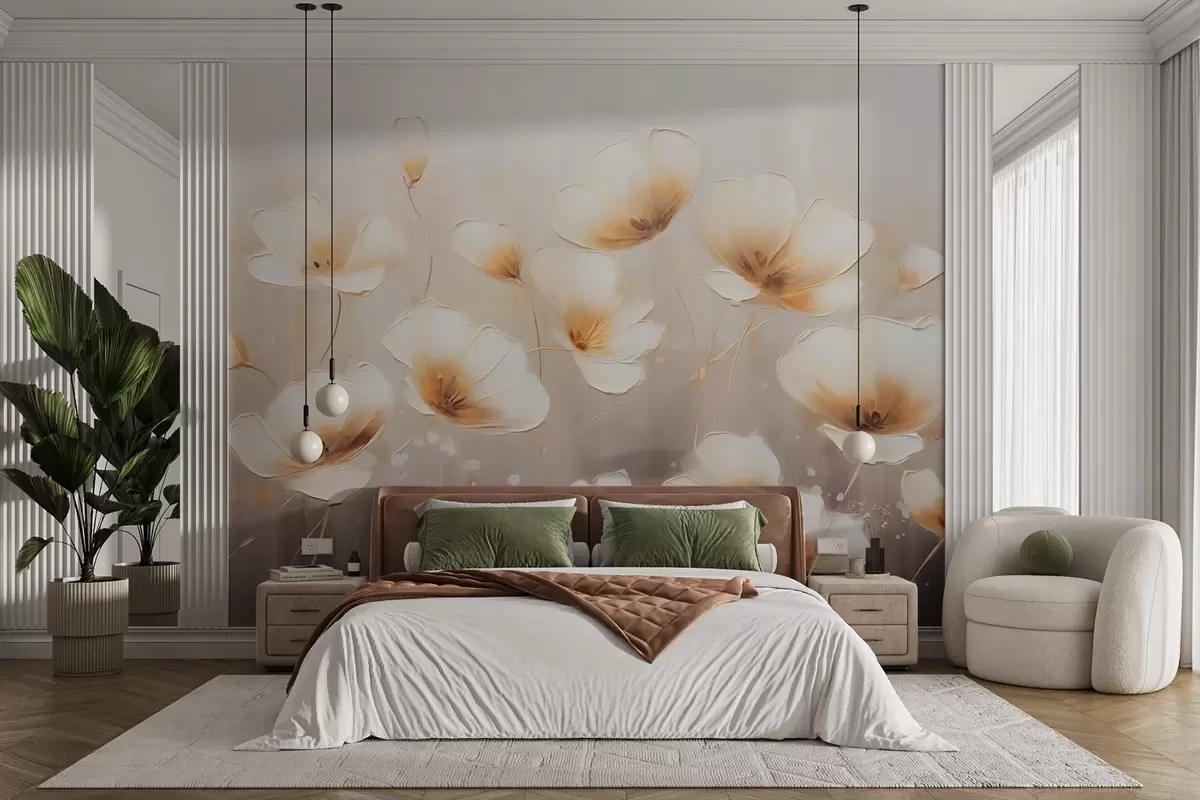 Papier peint Fleurs élégantes aux pétales délicats et doux dans des tons chauds N° w08746