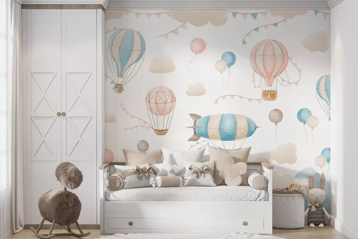 Papier peint Dessin aquarelle pour enfants avec ballons N° w08765