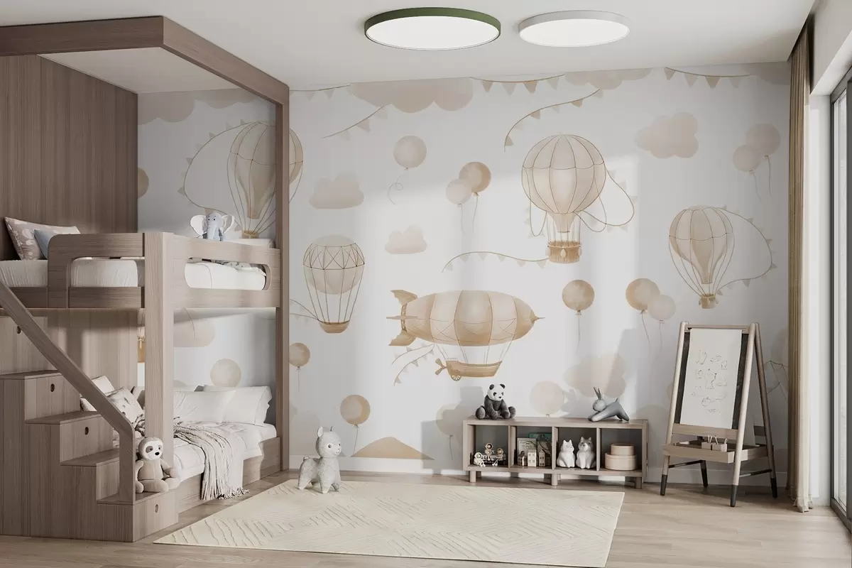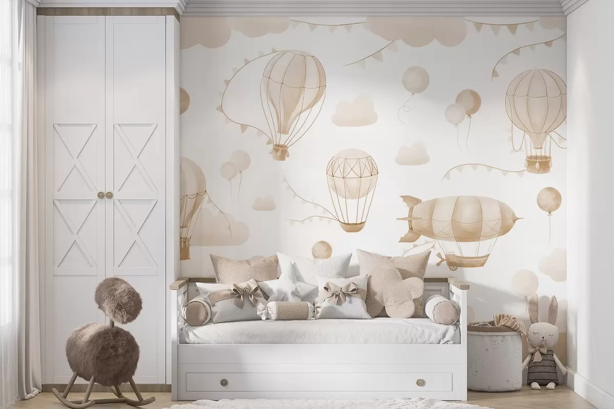 Papier peint Dessin aquarelle pour enfants avec ballons N° w08765v4